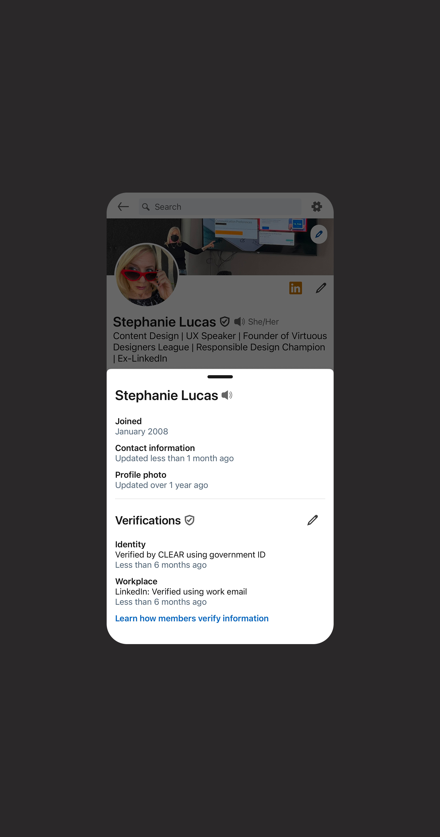 One of the most gratifying (while difficult) phases of the Verifications project was working on ways to provide government ID verification for those who choose not to use their ID name on their LinkedIn profile (such as the trans community). The product and engineering teams devised ways to avoid rejecting an identity verification outright by introducing accommodations in the backend systems. But there are valid cases where members’ chosen names are so different from their ID name, the verification check failed. Because the badge is a symbol of authenticity, we continually needed to weigh a safety assurance bar versus individual cases.